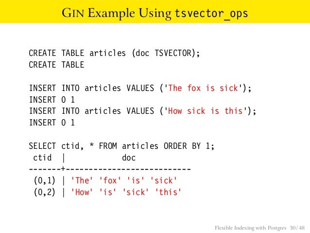 You must have INSERT privilege on a table in order to insert into it. This example inserts some rows into table films from a table tmp_films with the same . The INSERT SQL command initiates an insertion of data into the table called. PostgreSQL insert one-row examples. N are the names of the columns in the table into which you want to insert data. The target column names can be listed in any order.